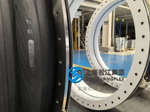 Heavy-duty DN1800 custom flexible joint for power plant FGD systems. Hand-built EPDM with full PTFE lining for acid resistance and SS304 flanges. 100% custom-to-drawing to solve large-scale industrial piping expansion.